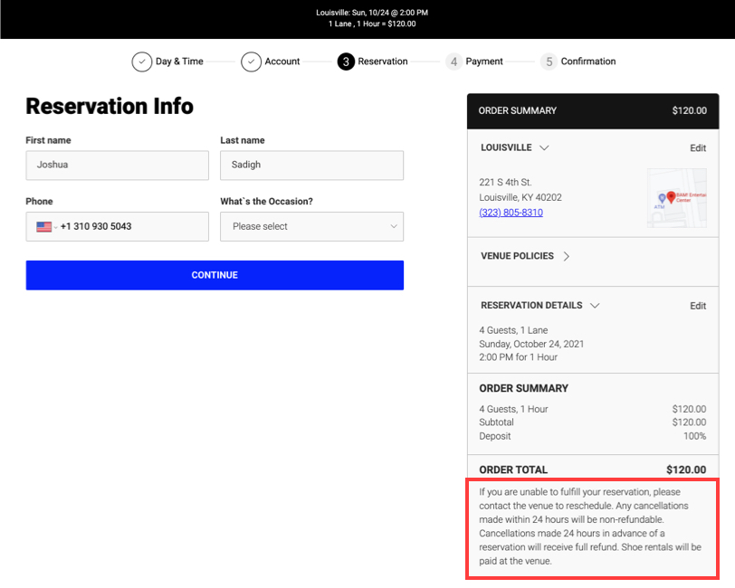 Any cancellations made within 24 hours will be non-refundable. Cancellations made 24 hours in advance of a reservation will receive full refund. Shoe rentals will be paid at the venue.