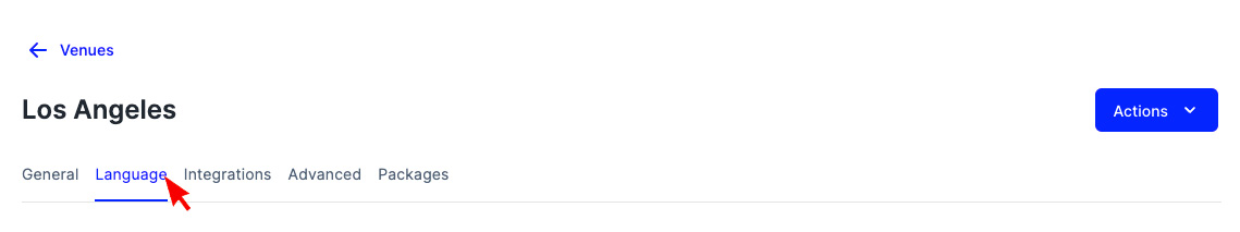 Once the Venue is selected click on the Language tab at the top of the venue page.